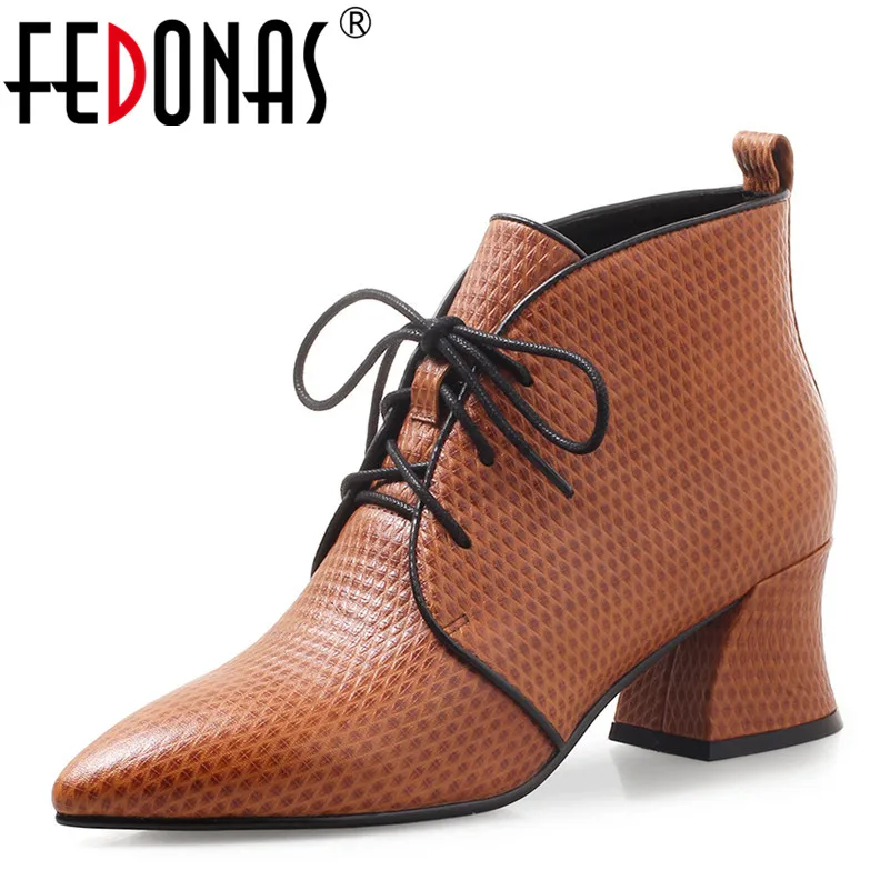 Goede Koop FEDONAS 1 Mode Vrouwen Enkellaarsjes Herfst Winter Warm Hoge Hakken Schoenen Cross gebonden Puntschoen Party Kantoor Kwaliteit schoenen Vrouw Goedkoop