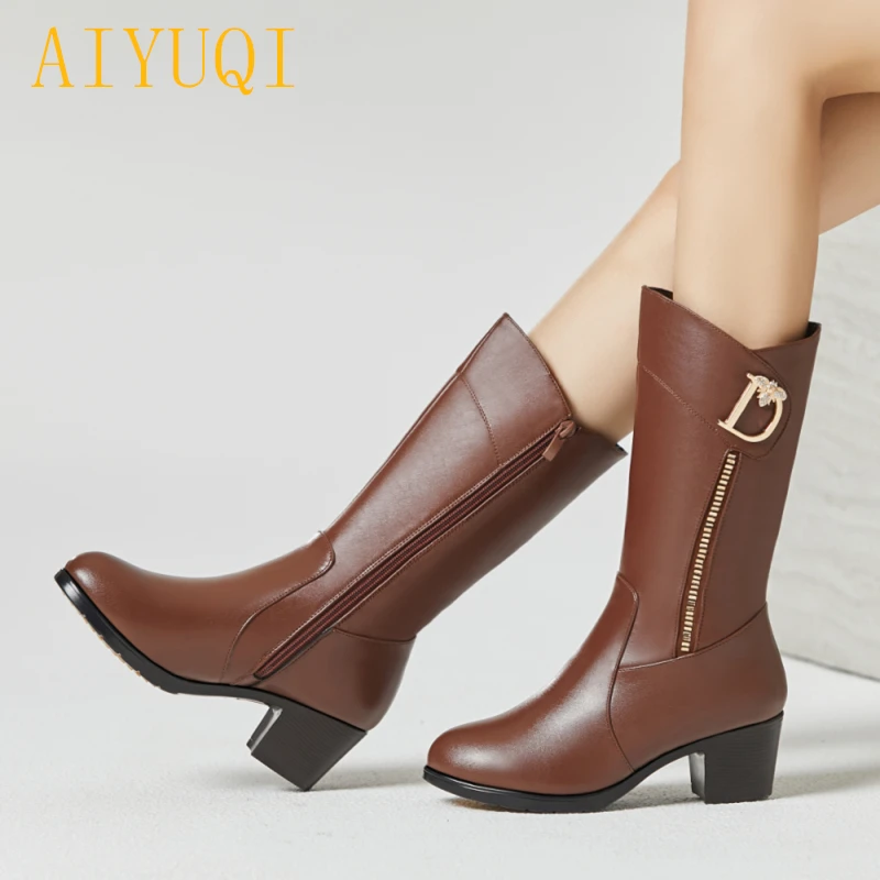 Kopen Goedkoop AIYUQI Vrouwelijke snowboots winter 2018 nieuwe lederen vrouwelijke motorlaarzen, big size 35 43 wol warm vrouwen jurk schoenen Prijs