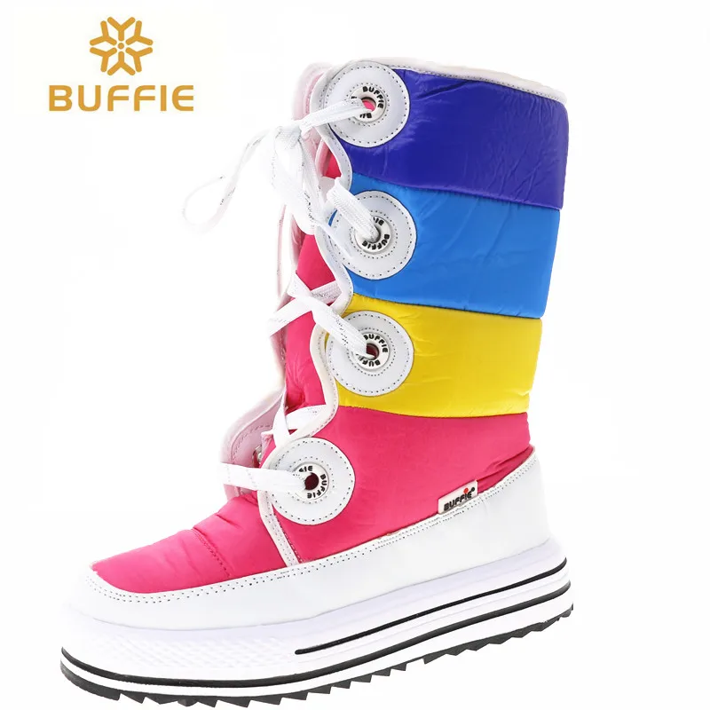 Kopen Goedkoop Kleur Laarzen Knie Hoge Vrouwen schoenen 2018 nieuwe collectie lace up snowboots Mooi en hoge kwaliteit winter laarzen meisje Laarzen gratis schip Online
